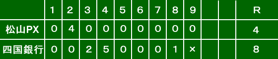 バッテリー: 田中、高松、大槻、阿部、丹 − 塩見